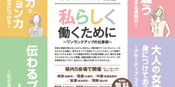 岐阜県の「働く女性のためのキャリアアップ講座」の中で下記を担当します。